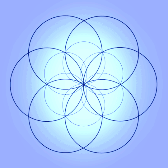 Continuando o movimento matemático da criação vamos chegar ao Sexto dia da criação obtendo-se o símbolo da flor de seis pétalas conhecida como a Semente da vida, o princípio da criação do Universo no qual nós vivemos.